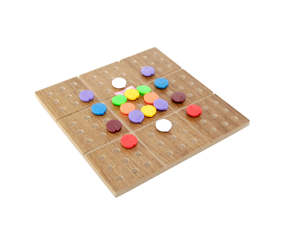 Игровая поверхность поделена на 9 квадратов по 9 отверстий (ячеек) в каждом.