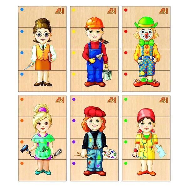Игра представляет собой шесть дощечек с изображениями представителей разных профессий: