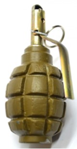 Макет гранаты Ф1 конструктивно состоит из цельного корпуса (оболочки),по поверхности которого, как в оригинале, выполнено оребрение, а также кольца чеки и резьбового вкладыша. Макет гранаты не содержит взрывчатого вещества, имитатор запала УЗРГ отсутствует, поэтому такой экземпляр не представляет для пользователя опасности. Материал изготовления – чугун. Аналогично оригинальному боевому образцу, вес макета равен 0,6 кг.