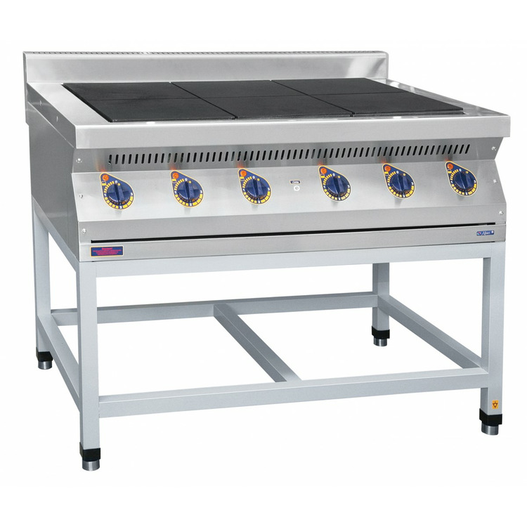 Плита электрическая на подставке предназначена для тепловой обработки пищевых продуктов (варка, жарка, разогрев, в функциональных и других емкостях). Все регуляторы расположены на передней панели, выполнены в 4-х позиционном варианте, оснащены световой индикацией. Плоская поверхность конфорок 300х300 позволяет без особых усилий передвигать емкости вдоль рабочей поверхности.