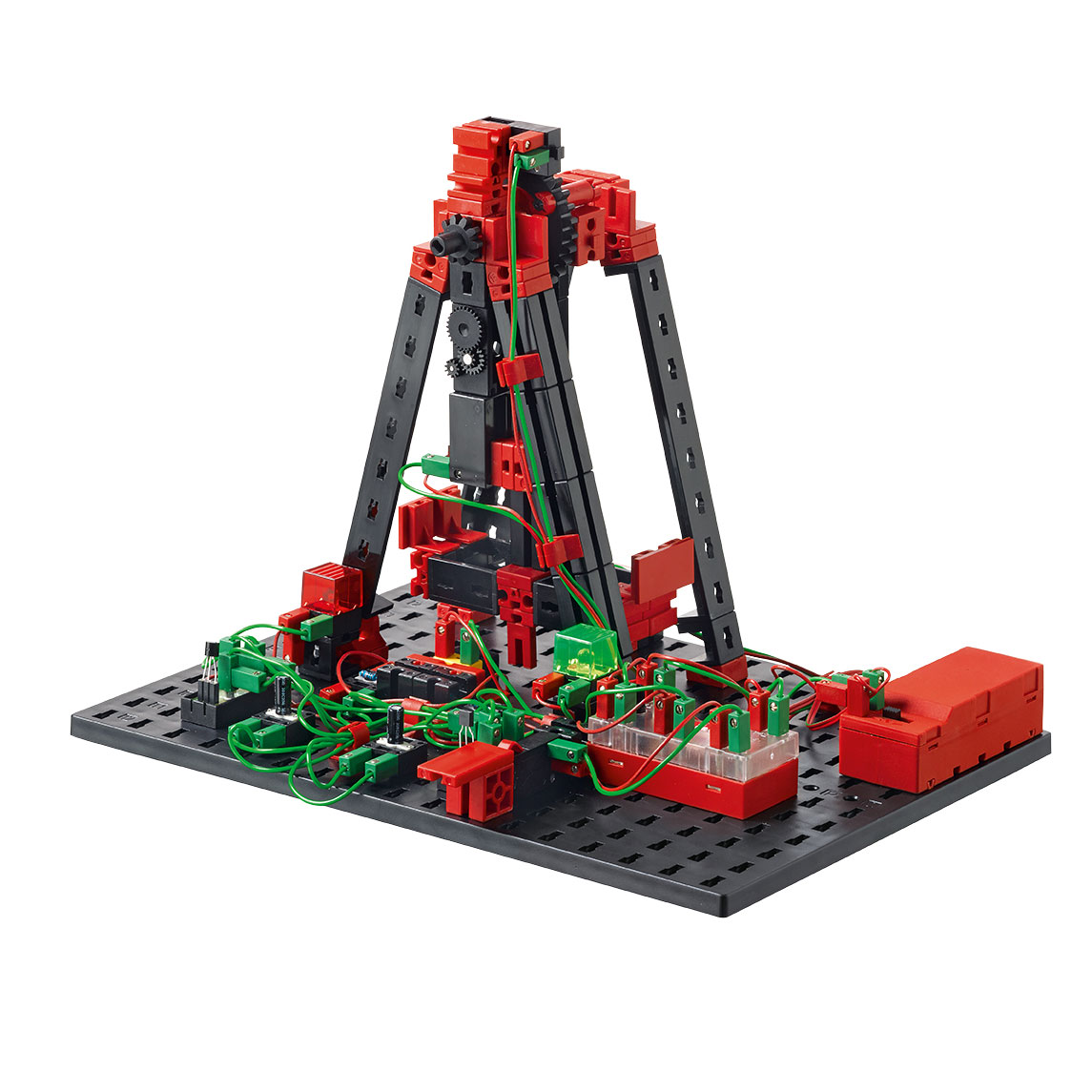 Электронный модуль управления E-Tec содержит 24 программы, готовые к работе, и оборудован входами и выходами для подключения двух моторов и трех датчиков. С его помощью можно управлять различными действующими устройствами, среди которых автоматический вентилятор, маяк, семафор, автоматический шлагбаум и другие.
