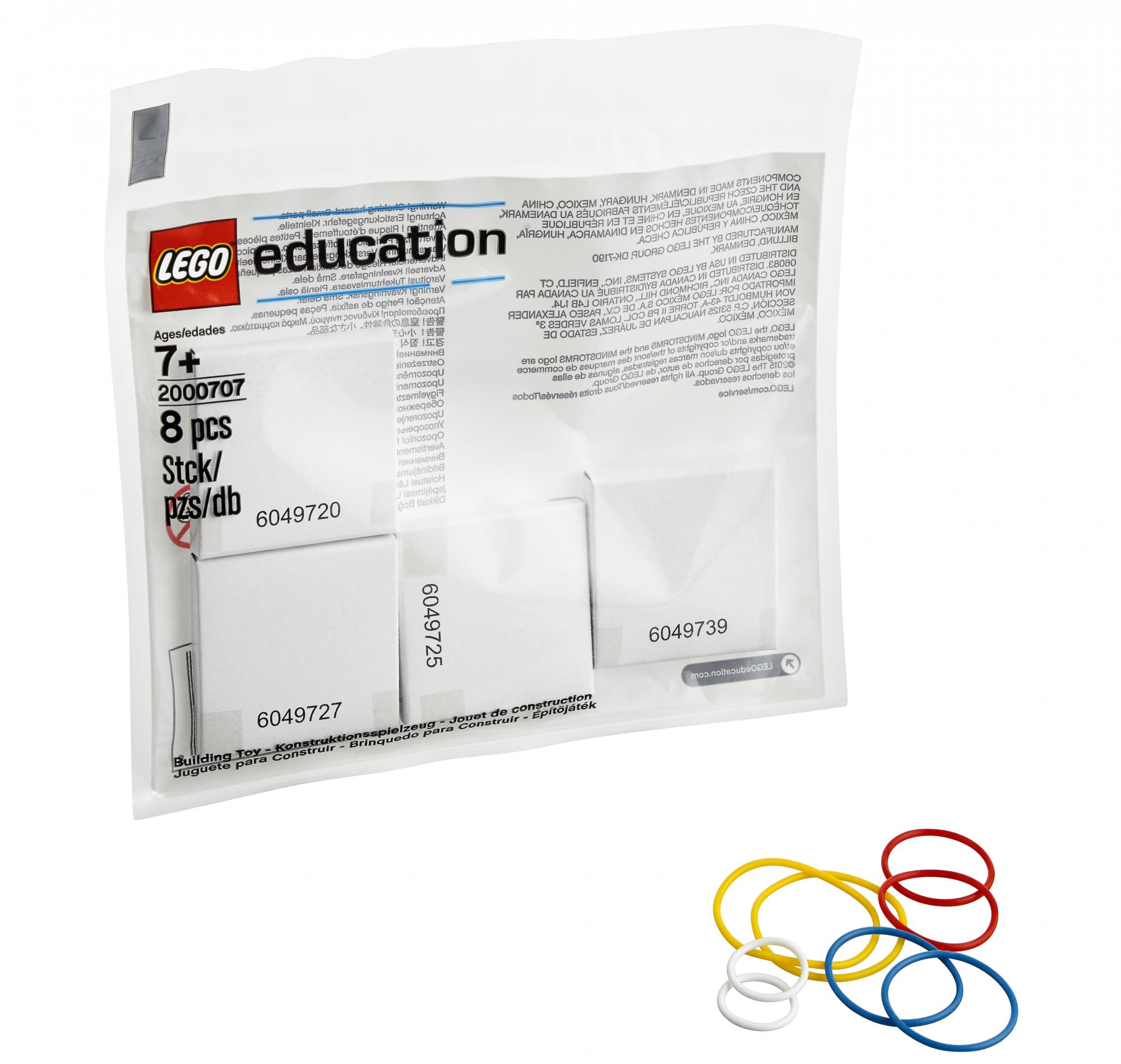 Комплект с запасными частями включает 8 резиновых колец разного диаметра для создания функциональных роботов, подходит для следующих наборов LEGO Education: