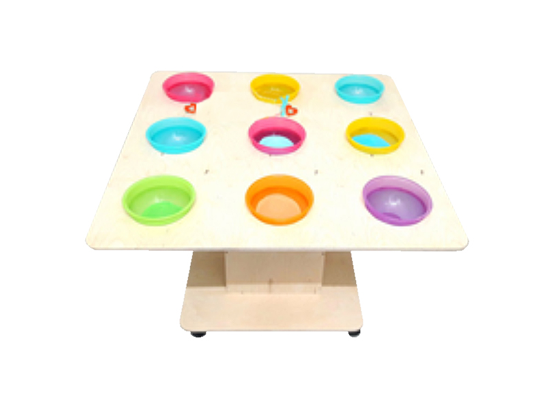 Яркий и функциональный стол с ёмкостями для цветного песка, ёмкости съёмные. Удоные колёсики придают мобильность. Можно удобно рисовать на песочных трафаретах.