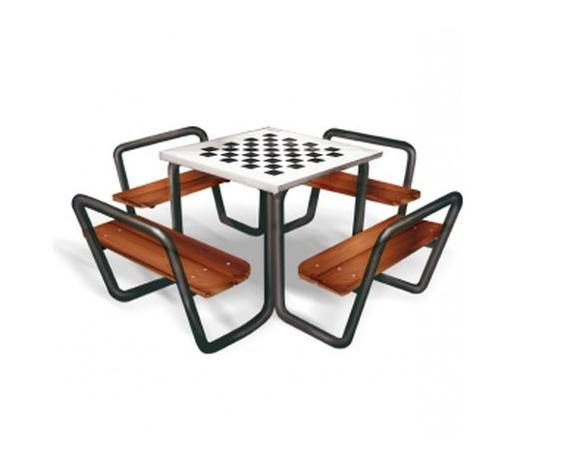 Стол шахматный со скамейками, каркас труба металлическая диаметр 26, стол и скамьи фанера ЛФСФ 15 мм.